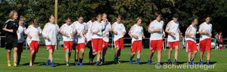 Die Gegnerinnen gehören seit dieser Saison zu den B-Juniorinnen im Kreis Dithmarschen und waren von daher, gemessen an unseren Mädchen, die teilweise noch D-Juniorinnen (Jahrgänge 1999 und 2000) spielen könnten, bis zu 5 Jahre älter.